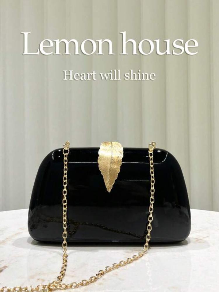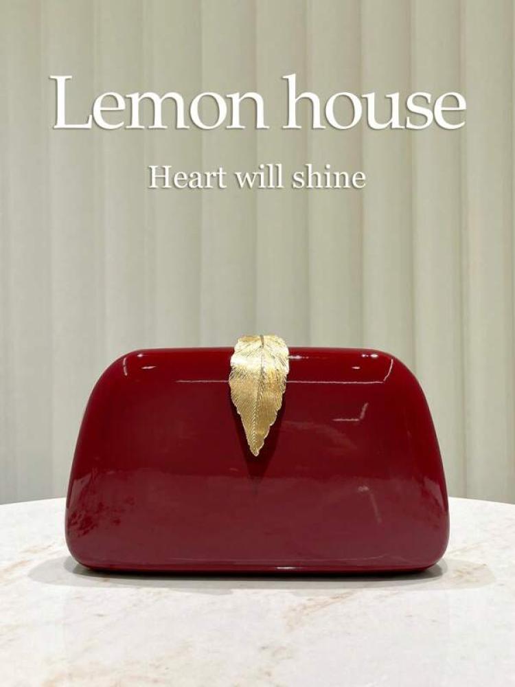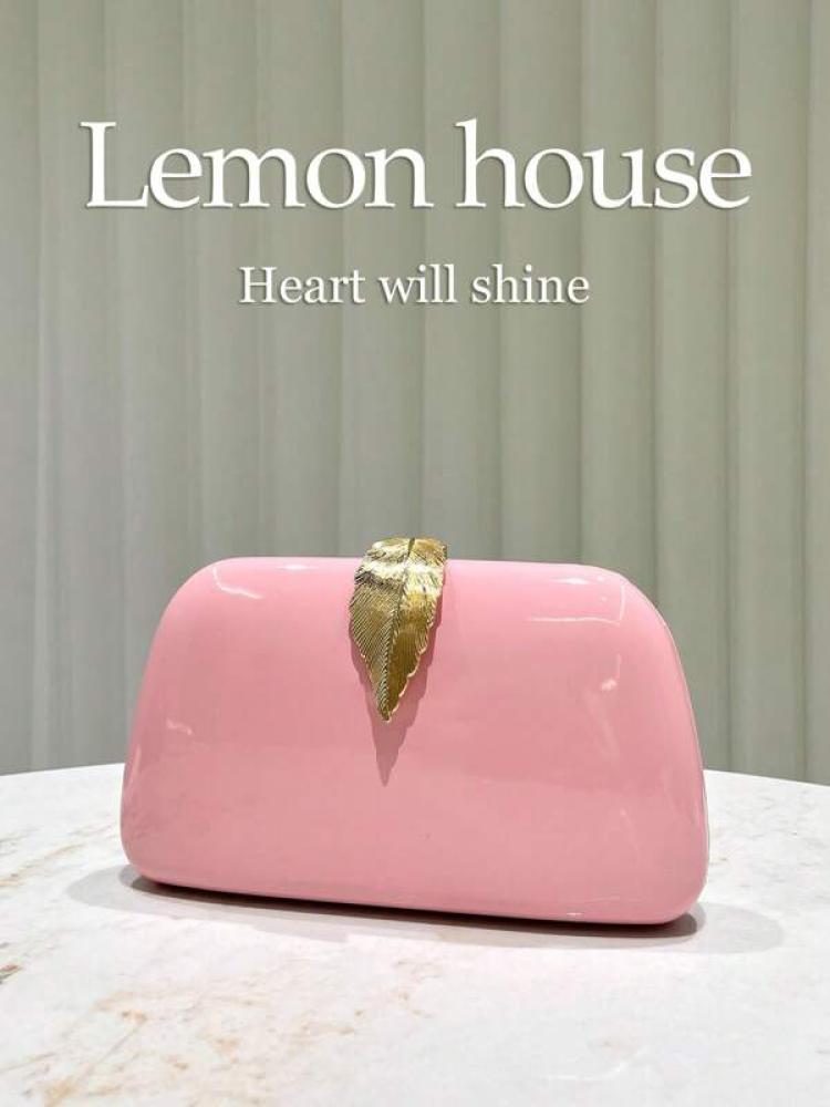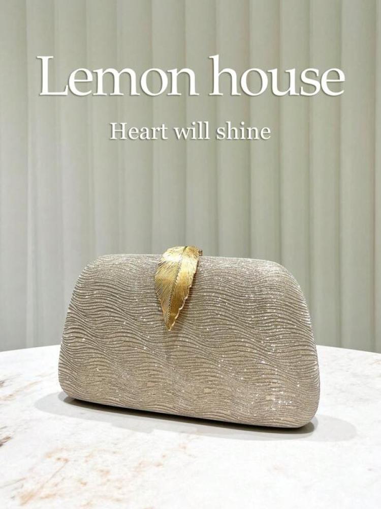 1 قطعة حقيبة مساء انيقة وردية اللون مطلية بالمعدن بتصميم ورقة عتيق ذات مادة PU عاكسة، مناسبة للمناسبات الرسمية والحفلات والزفاف للسيدات