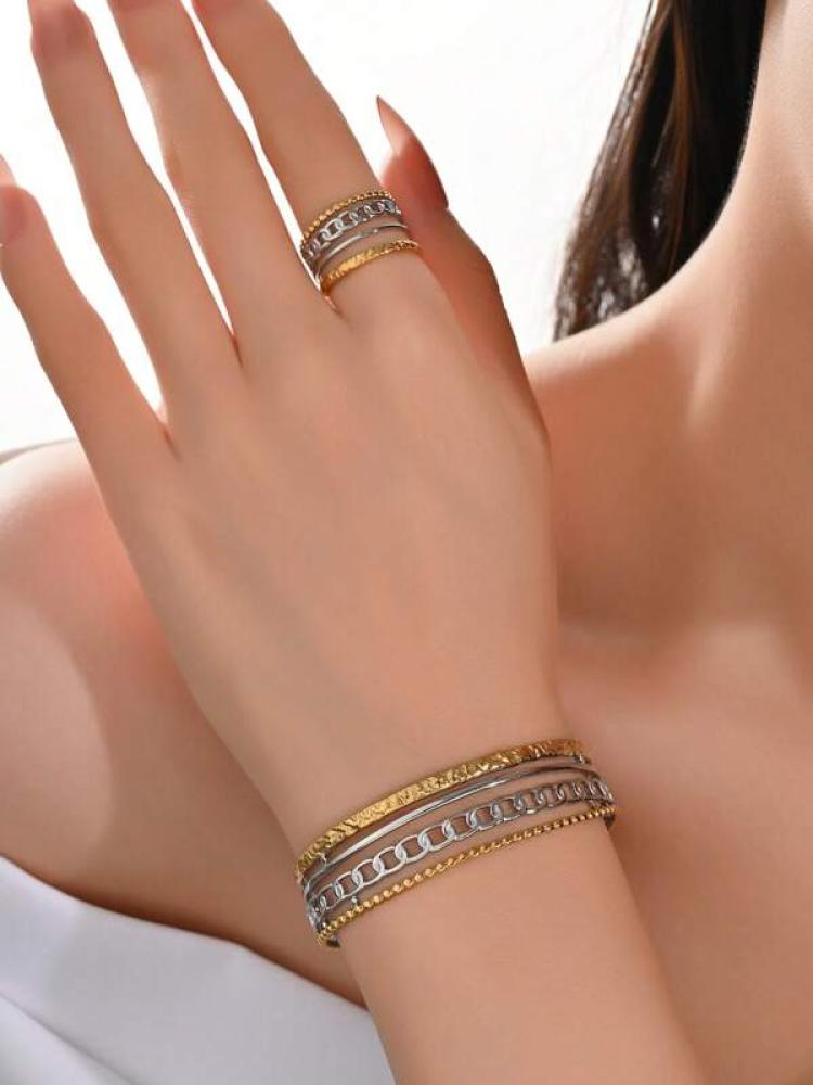 2 قطعة/ 1 مجموعة أو 1 قطعة أساور ذات طراز فاخر مطلية بذهب عيار 18 قيراط من الفولاذ المقاوم للصدأ إكسسوارات مجوهرات نسائية هدية للزفاف والحفلات والمواعدة